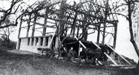 The frame of a barn after a barn raising, 1935. Farm of Annie and Jim Leonard (son of John Leonard)., IHS134