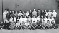 Alcona Beach Public School grade 6 to 8 class photo, 1963-64, with teacher Lloyd Ellesworth. Pictured from left to right, IHS4103