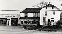 Photo of the exterior of Gord and Ron Turner's garage, called the Supertest Service Station after Supertest Petroleum,,