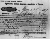 Receipt from Agricultural Mutual Assurance Associatiojn for Canada to Wm. Cowan for $16.50 for fire insurance on, IHS3136