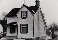 Photo of the Duncan homestead on lot 18, Concession 6. It is a small two-storey clapboard house with two windows on, IHS235
