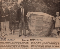 Newspaper clipping of an image with the caption: "Innisfil township's first historical plaque was unveiled Sunday