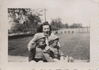Photo of Joan McLean (née Kidd) with her sons Brian and Bob.,