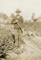 Photograph of Ward Goodfellow beside the canal on Goodfellow Avenue, at the bottom of 9th line. The canal was dug in the
