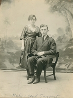 Portrait of Harry and Ruby Cannon. Harry is wearing a suit and is seated; Ruby is standing and wearing a long white