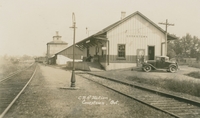 Railway stations--Grain elevators--Vintage cars--Railroad cars--Railroad tracks--Cookstown--CN Railway Stations