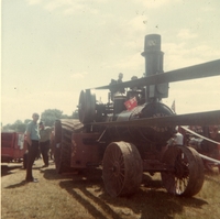 Photo of an antique steam engine used for sawing lumber, on display at the steam show of 2 August 1969