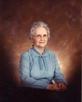 A studio portrait image of Mrs. Alice Baker, taken in 1985. In the image she is wearing a blue high-collared blouse, and