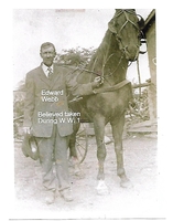 Photo of Edward Webb holding the reins of a horse tethered to a buggy. The photo is believed to have been taken during