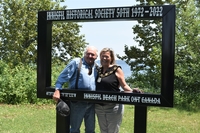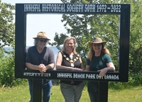 Photo of Innisfil Historical Society President Mark Hall, Mayor Lynn Dollin, and Kathy Hall standing inside a specially