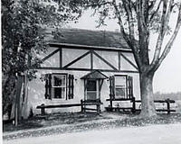 Photo of the exterior of the home of Mr. and Mrs. Bill Stevenson. The small house has a rustic appearance with shutters,