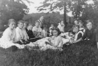Orpha Srigley's home. Mrs. Srigley always had a picnic on her lawn for the children before school started, IHS734
