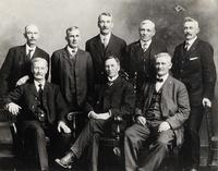 Group studio photo of the Innisfil Town Council from 1919. Pictured from left to right, seated in the front row are:, IHS1070