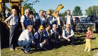 Group photo taken outside of the Village store - northwest corner, owned by Harry Albrecht., IHS529