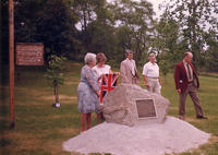 Mrs. McBride and daughter and friends at dedication service at Wilson Hill Cemetery.,