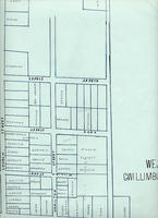 Hand-drawn map depicting streets and lots with the names of some lot owners in the south east quadrant of Cookstown. The,