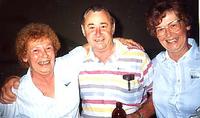 Colour photo of Marg Davis, George Fildey, and Ruby Beers (née Davis) taken at the Cookstown Reunion celebration in 1984,