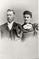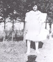 Mrs. Irving Nelson at age 25 (1871-1967). Note the "Ladies Finger" cake in her hand. This is a photograph of a, IHS2273