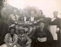 Photograph taken of a skit at Beeton Annual entitled "The Quilting Party" by the Cookstown Women's Institute. Pictured,
