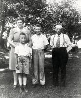 Group photo of the Blackmore family in 1943. Pictured from left to right are Barry Blackmore (1921-2002), his stepmother, IHS 4477