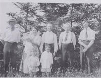 George Wright, Lottie (Chas.) Wright holding Wallace Wright, Charlie Wright, Thomas Butler (Grandfather), Fred Wright., IHS3412