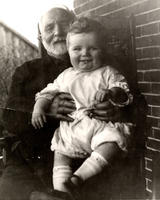 Photo of William Cowan on his 90th birthday holding his great-grandson, Bob Cowan., IHS739