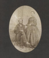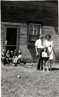 William and Mary (Mason) Somers and various family members beside their log house., IHS3203