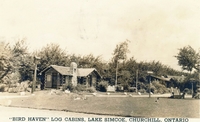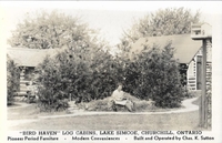Promotional photo of Bird Haven, a business operated by Charles Keyworth Sutton near Churchill, which offered log cabins