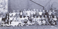 Front left to right: _______, May Allen, Milton Morton, Mildred Ayerst, Lucile Ayerst, Harvey King, Bessie Cunningham,, IHS2647